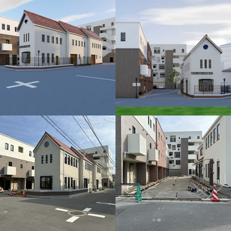 展示会の後、KGビレッジの見学に行きました。作ったイメージパースと同じように建てました。外構、C棟にどんな店や事務所は入るのが楽しみにしています。